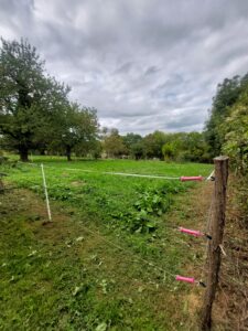 1 grand pré arboré certifié AB clôturé sur 3 fils avec électricité accueille vos équidés.